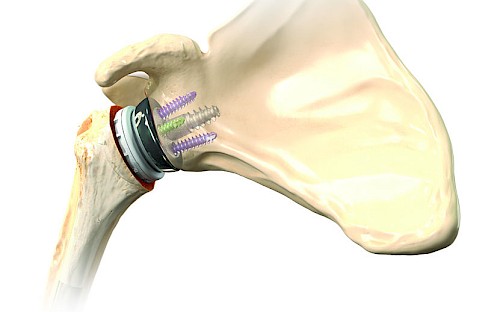 Bei irreparabler Schädigung der Rotatorenmanschette ist die inverse Schulterprothese oft das Implantat der Wahl. Bei dieser Art der Schulterendoprothese wird die Gelenkanatomie umgekehrt (umgekehrtes Drehzentrum). Die Kugel sitzt an der Stelle der Schulterpfanne und diese wiederum am Oberarmkopf. Der Deltamuskel oder Schulterkappenmuskel übernimmt folglich die Funktion der verloren gegangenen Sehnen, um so Ihre Schulterbeweglichkeit zu verbessern bei: